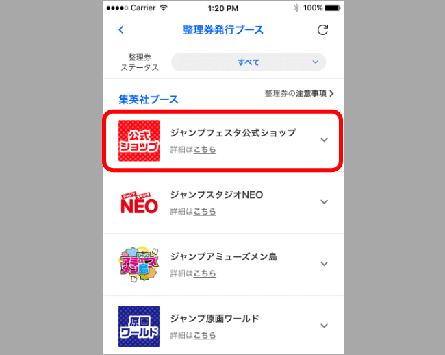 利用の際には「ジャンプNAVI」アプリにて取得可能なグッズ購入整理券が必要です。